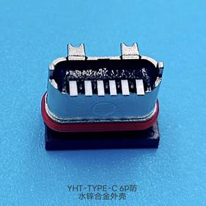 TYPE-C母座6P立贴防水压铸成型锌合金外壳USB3.1简易充电接口