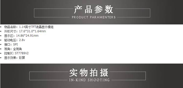 低功耗小尺寸液晶屏SPI接口135240像素1.14寸TFT彩屏lcd模组