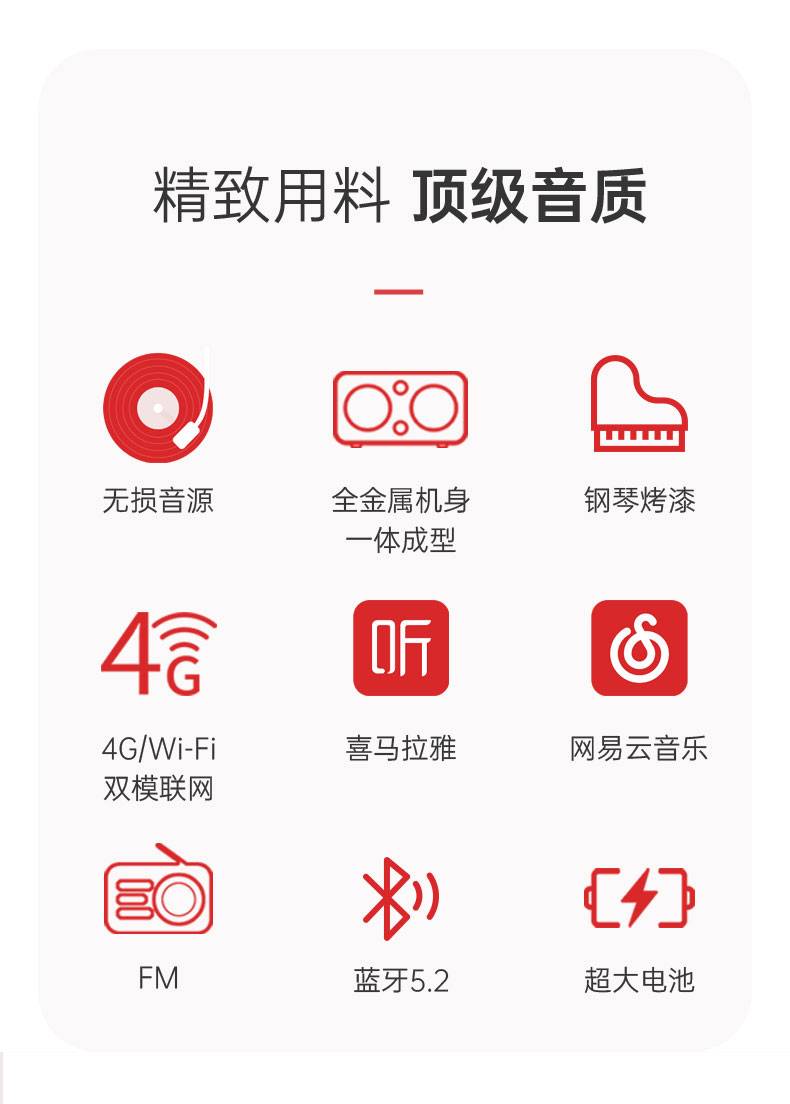 (6)支持蓝牙,FM,网络节目,智能语音需按键触发,无监听