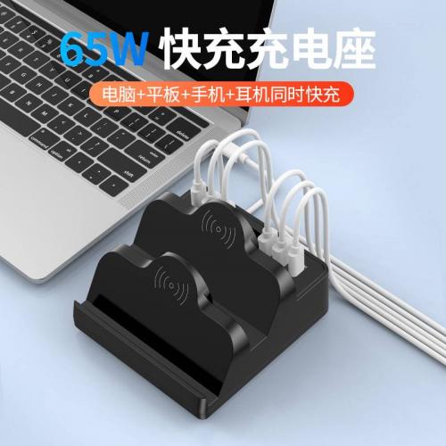 新款无线充电器 65W充电座支持笔记本平板手机耳机快充多口充电器