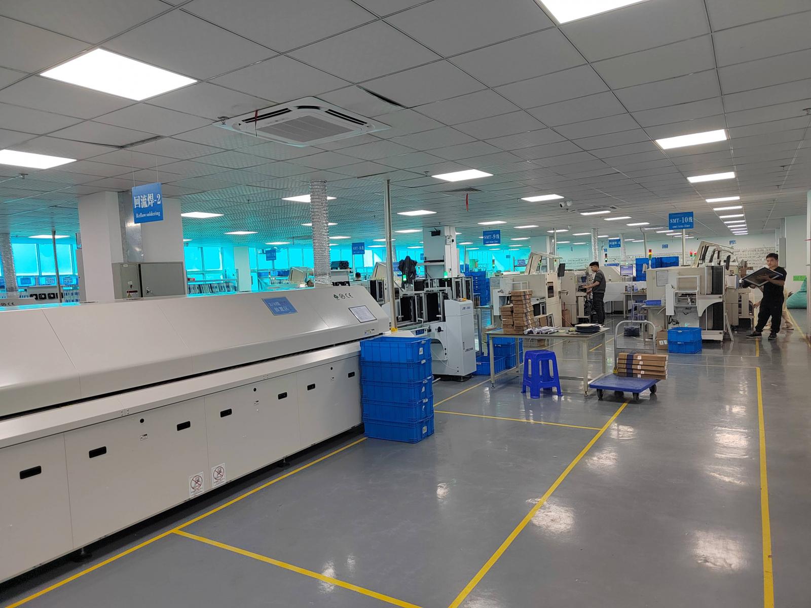 工厂位于深圳宝安西乡九围. 创建于2 0 0 9 年,迄今为止已1 5年生产制造经验.工厂目 前拥有员工300 人左右,先进的生产设备雅玛哈机器SMT生产线,AOI检测设备:,回流焊:台,后焊测试生产线条,工厂面积:4200平方米。