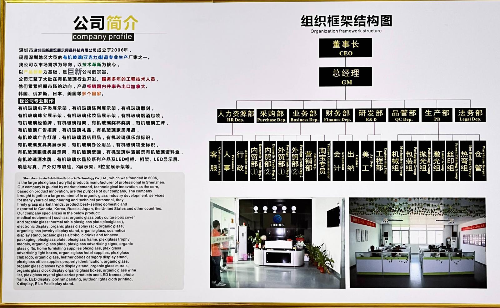 深圳巨新展览展示用品科技有限公司创建于2006年,是深圳地区最大的有机玻