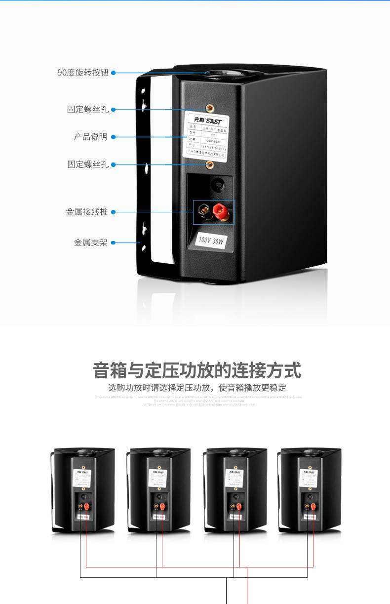 先科 A40会议室音响定压广播系统店铺教室商用餐厅壁挂三角音箱