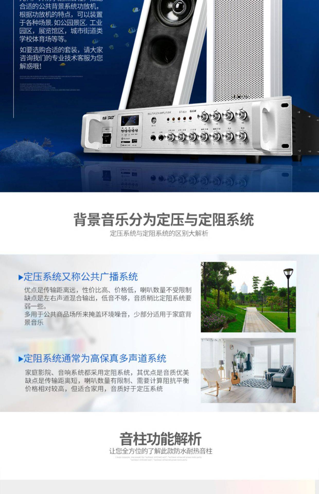 先科有源防水音柱蓝牙音响室外商用客厅校园广播壁挂式音箱 ST501