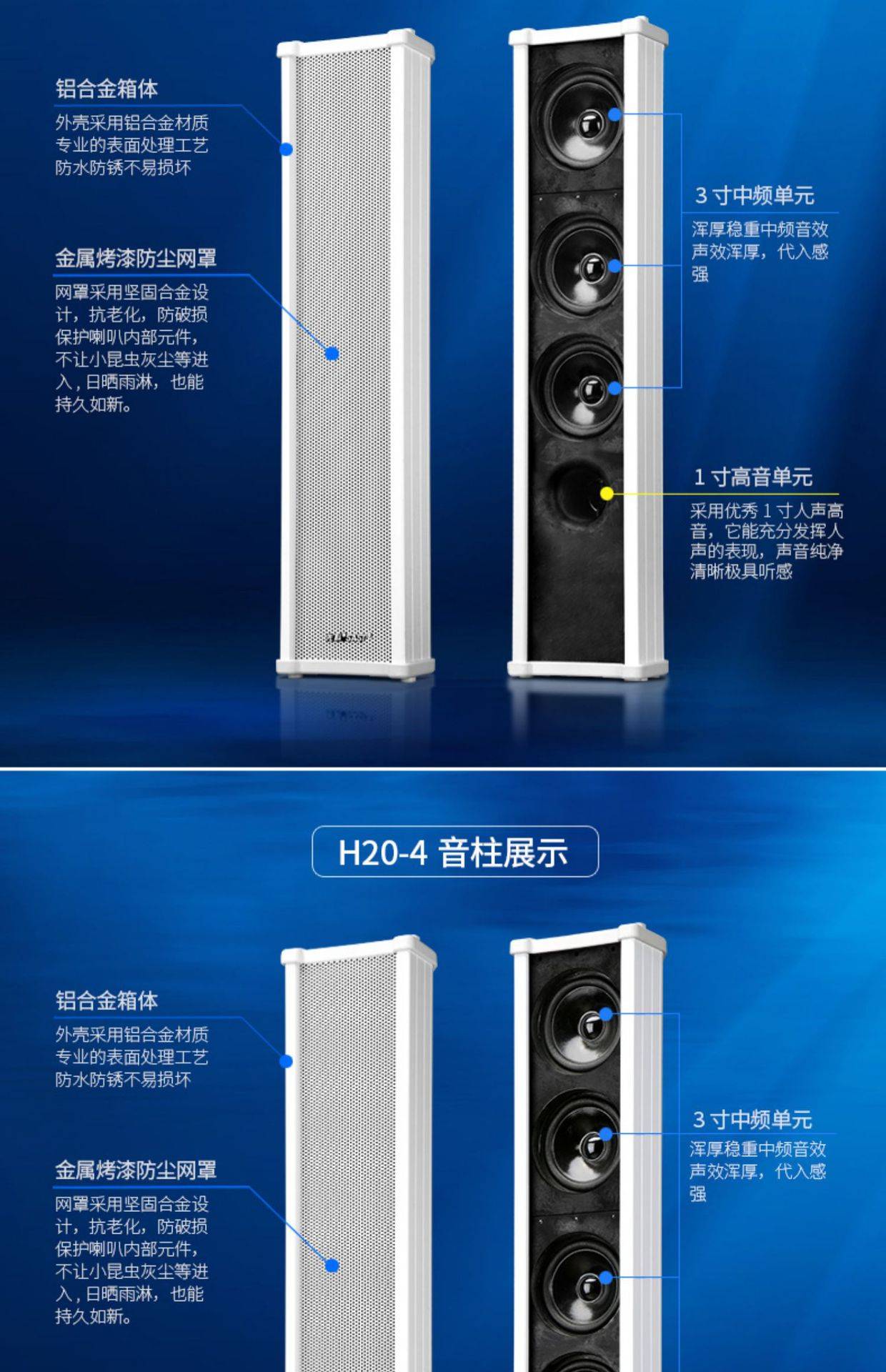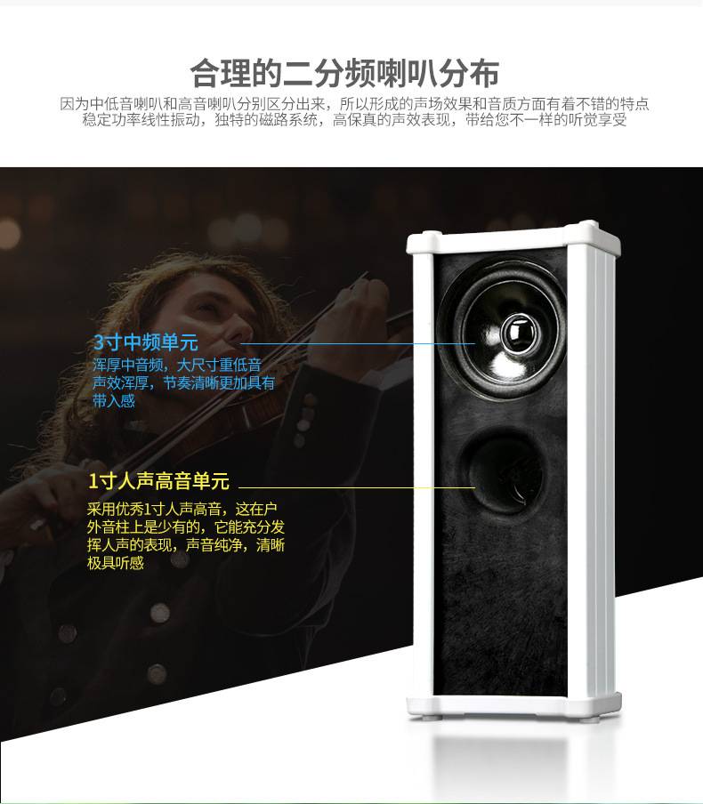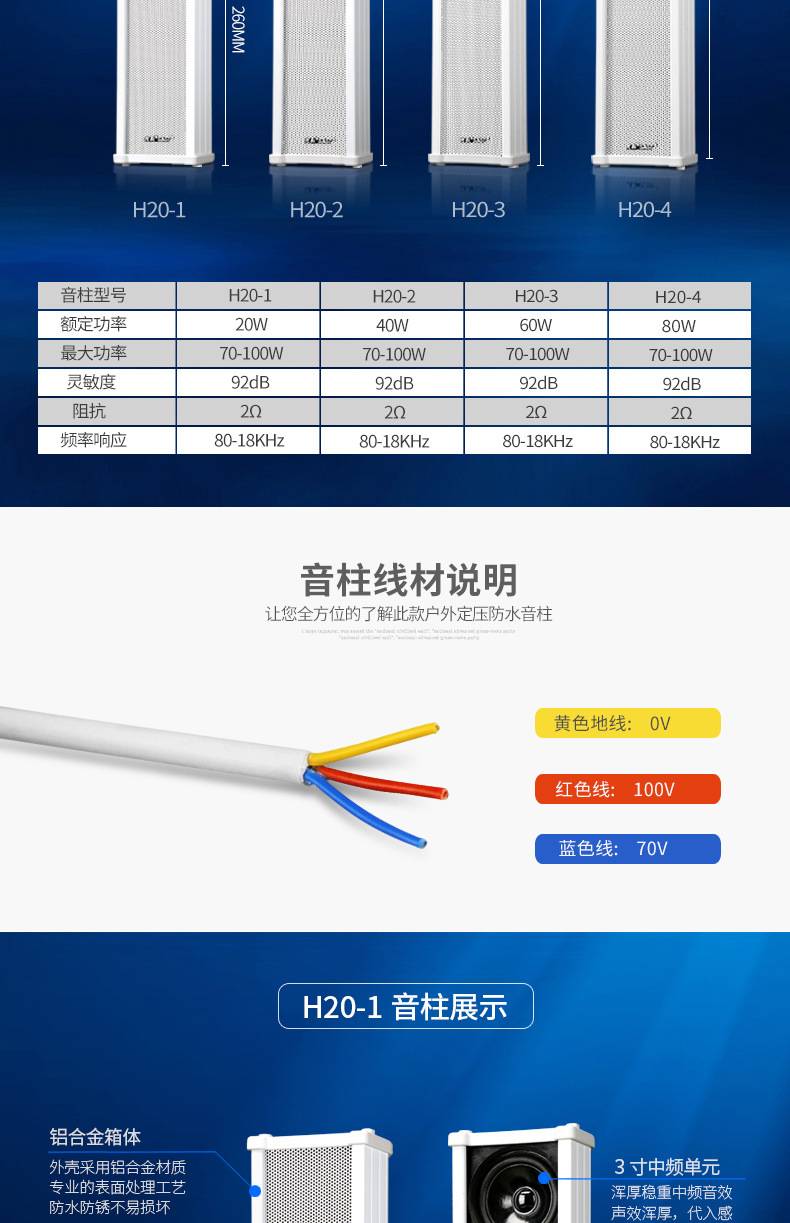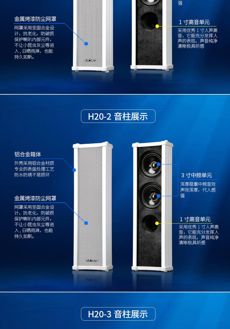 先科 H20定压防水音柱校园背景音乐店铺室外公共广播专用壁挂音箱