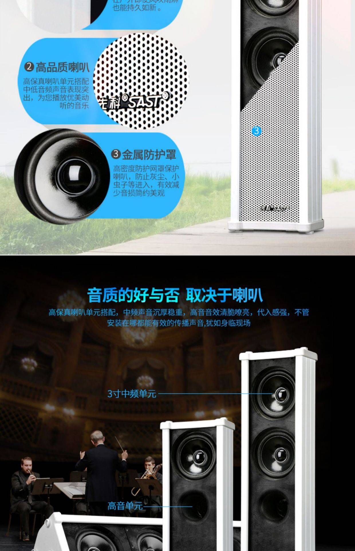 先科IP网络音响防水音柱壁挂音箱校园工厂室内外公共广播智能系统