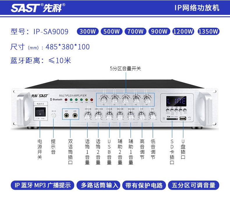 先科 IP-SA9009网络定压解码器智能定时远程控制消防广播专业功放