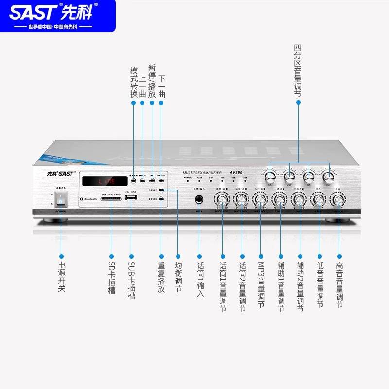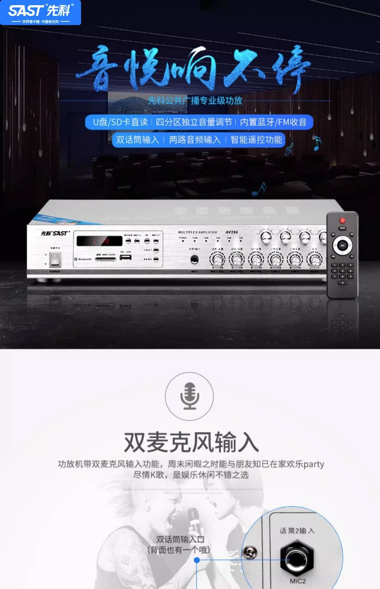 先科AV-296专业定压功放校园广播四分区家用蓝牙吸吊顶喇叭放大器