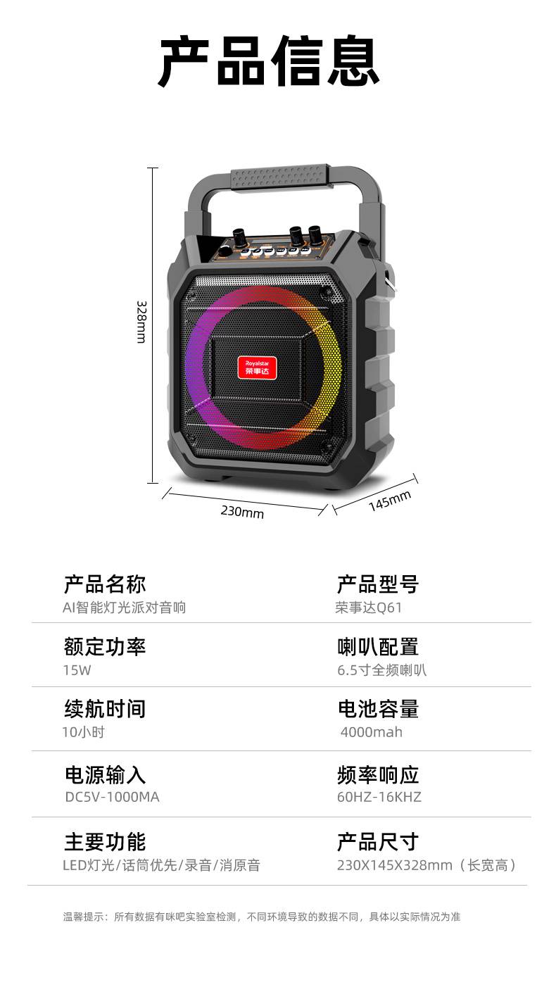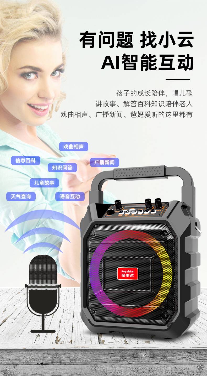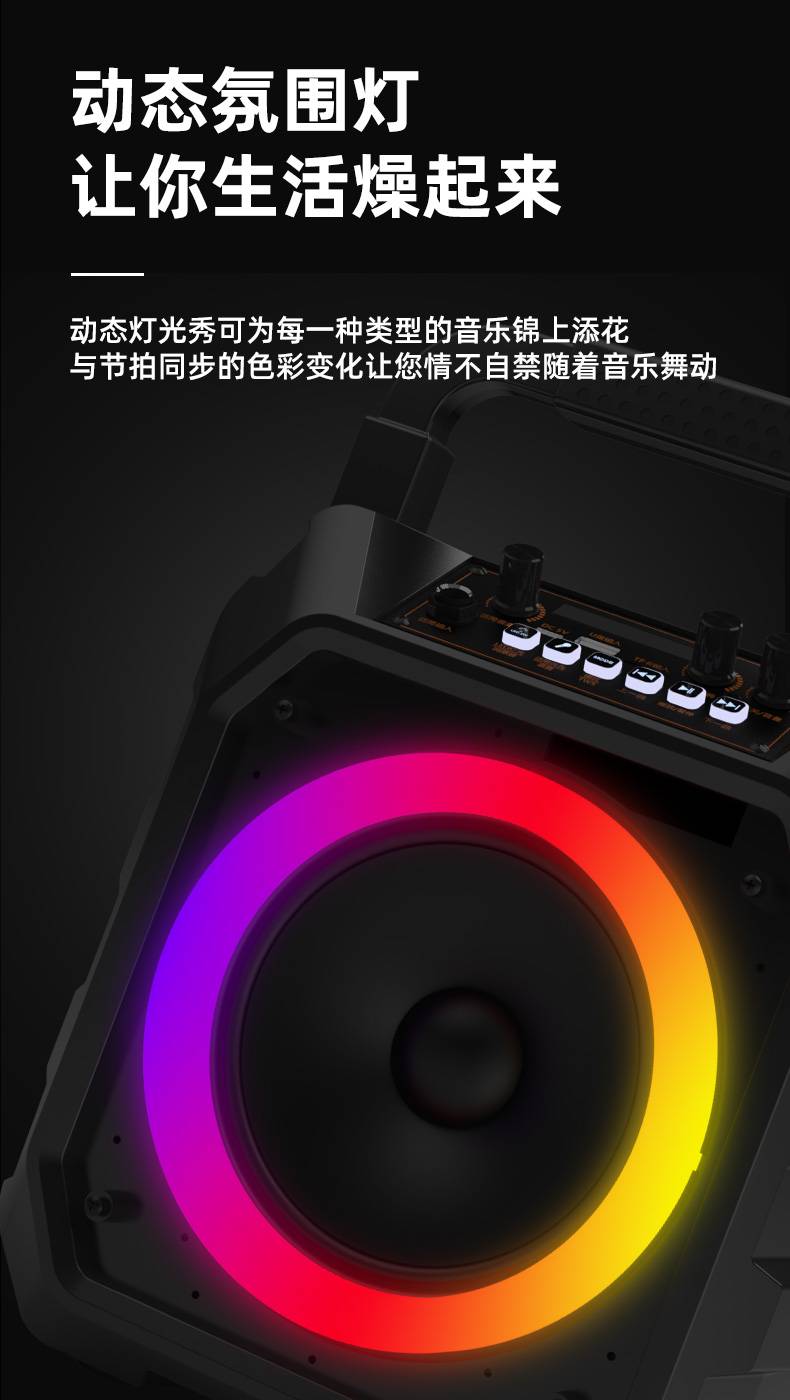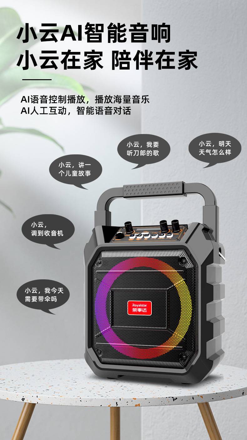 荣事达Q61智能AI炫彩灯光声卡特效广场舞户外K歌音响