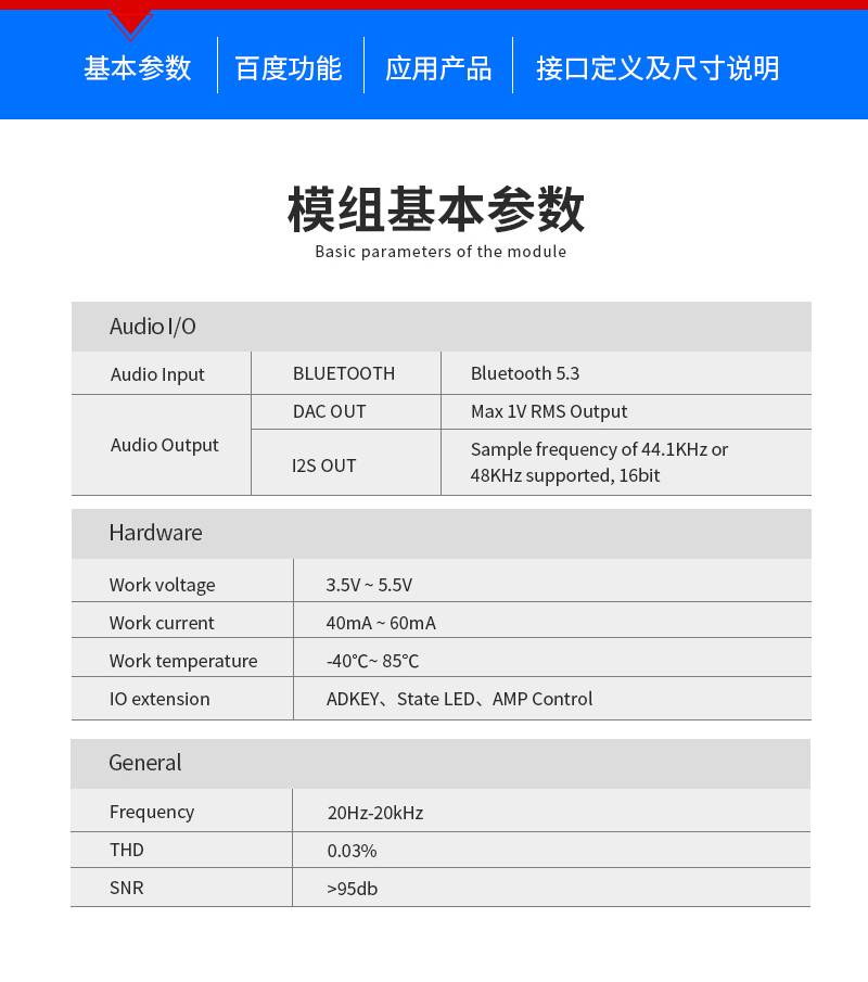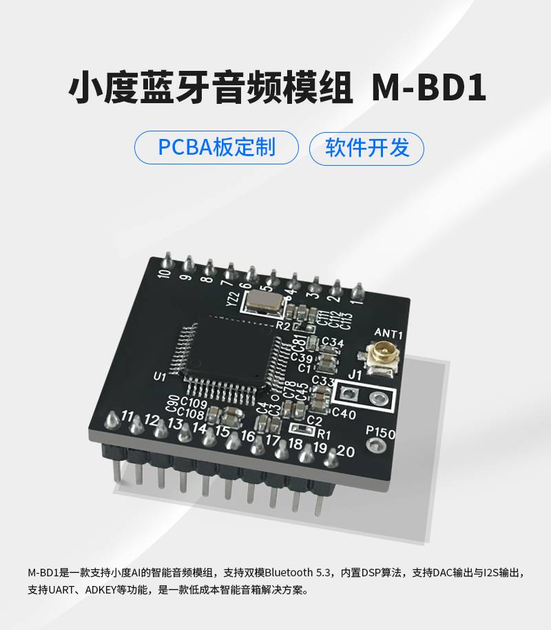 M-BD1是一款支持小度AI的智能音频模组,支持双模Bluetooth 5.3,内置DSP算法,支持DAC输出与I2S输出,支持UART、ADKEY等功能,是一款低成本智能音箱解决方案。