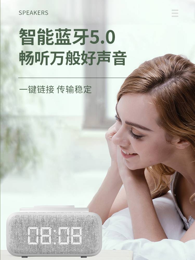 功能:蓝牙/无线充/时钟闹钟/FM/小夜灯/支架