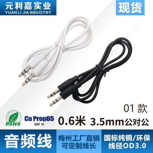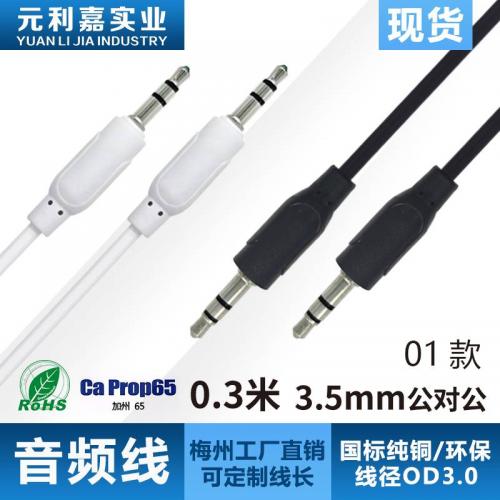 0.3米音频线 环保纯铜3.5mm公对公音响手机蓝牙车载连接线现货