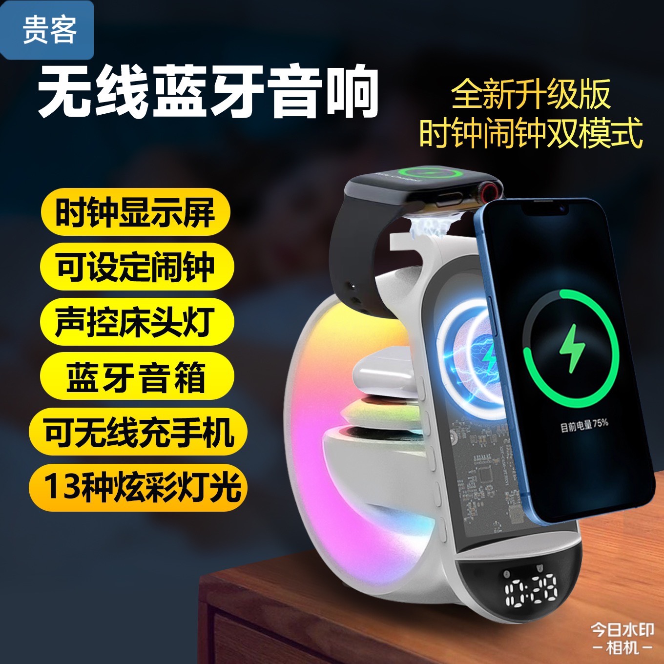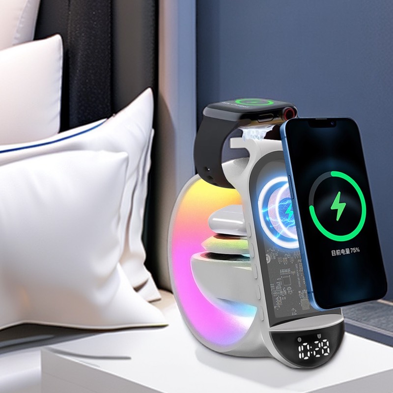 外贸爆款大G蓝牙音箱时钟显示15W无线充电桌面炫彩氛围灯创意礼品