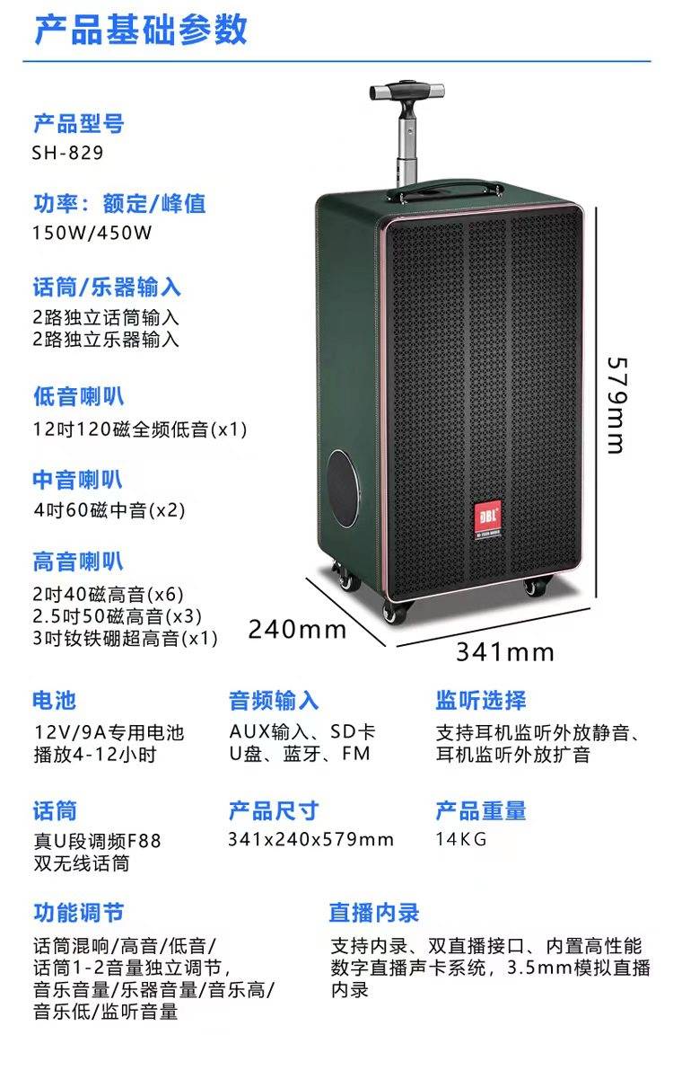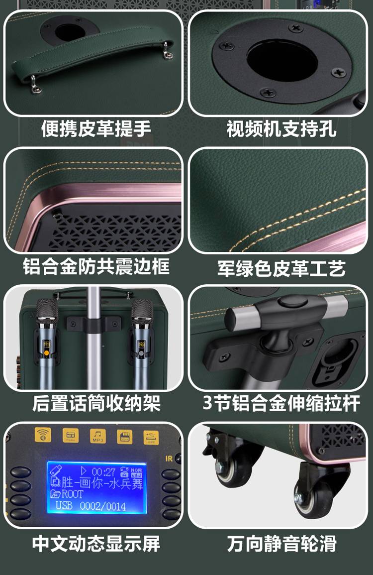 SH-829大功率13单元12吋铝合金边框全皮革无线连接移动视频点歌机拉杆音响
