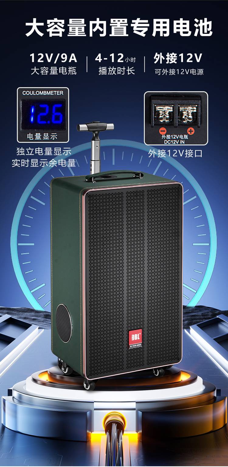 内置电瓶:12V 9A超大容量天能电池,播放时长4-12小时