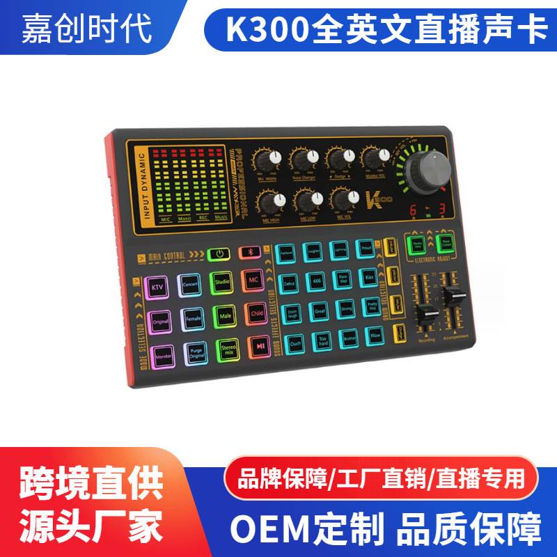 跨境优选K300全英文直播声卡,手机电脑通用带彩灯效果