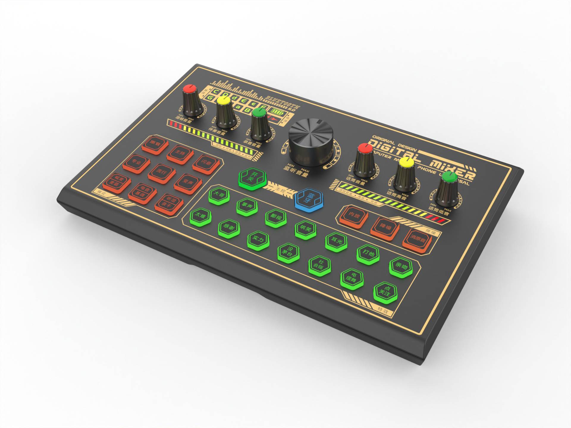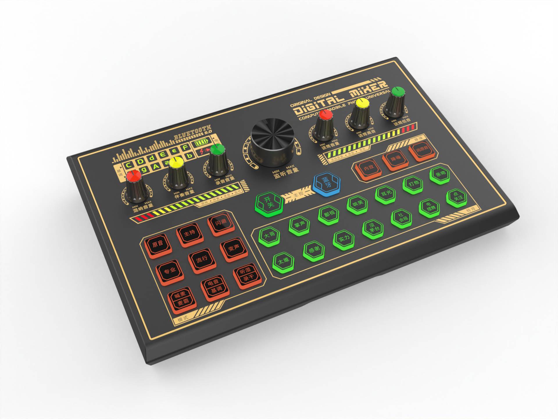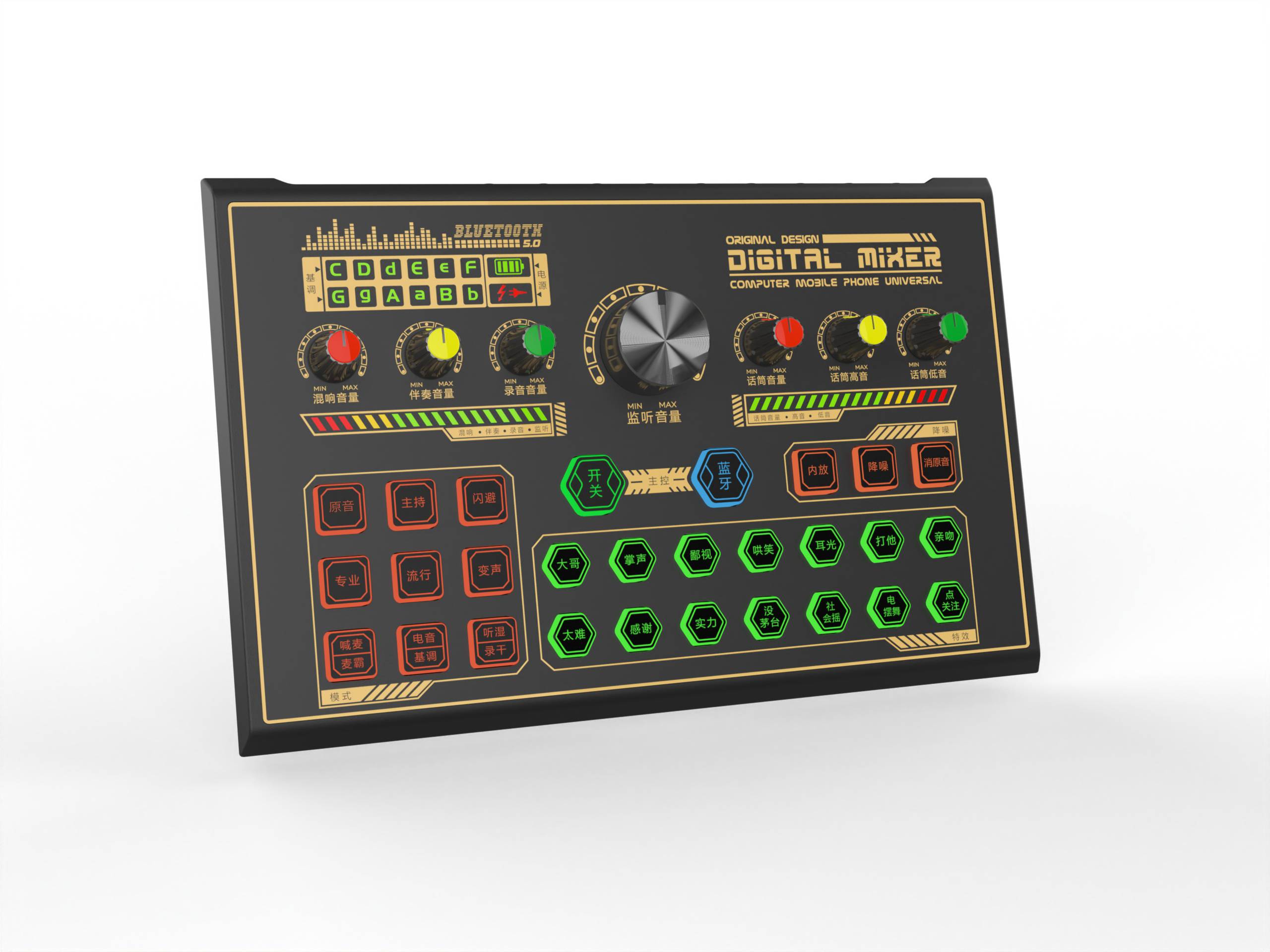 跨境K500全英文直播声卡专用手机电脑通用,兼容多平台直播