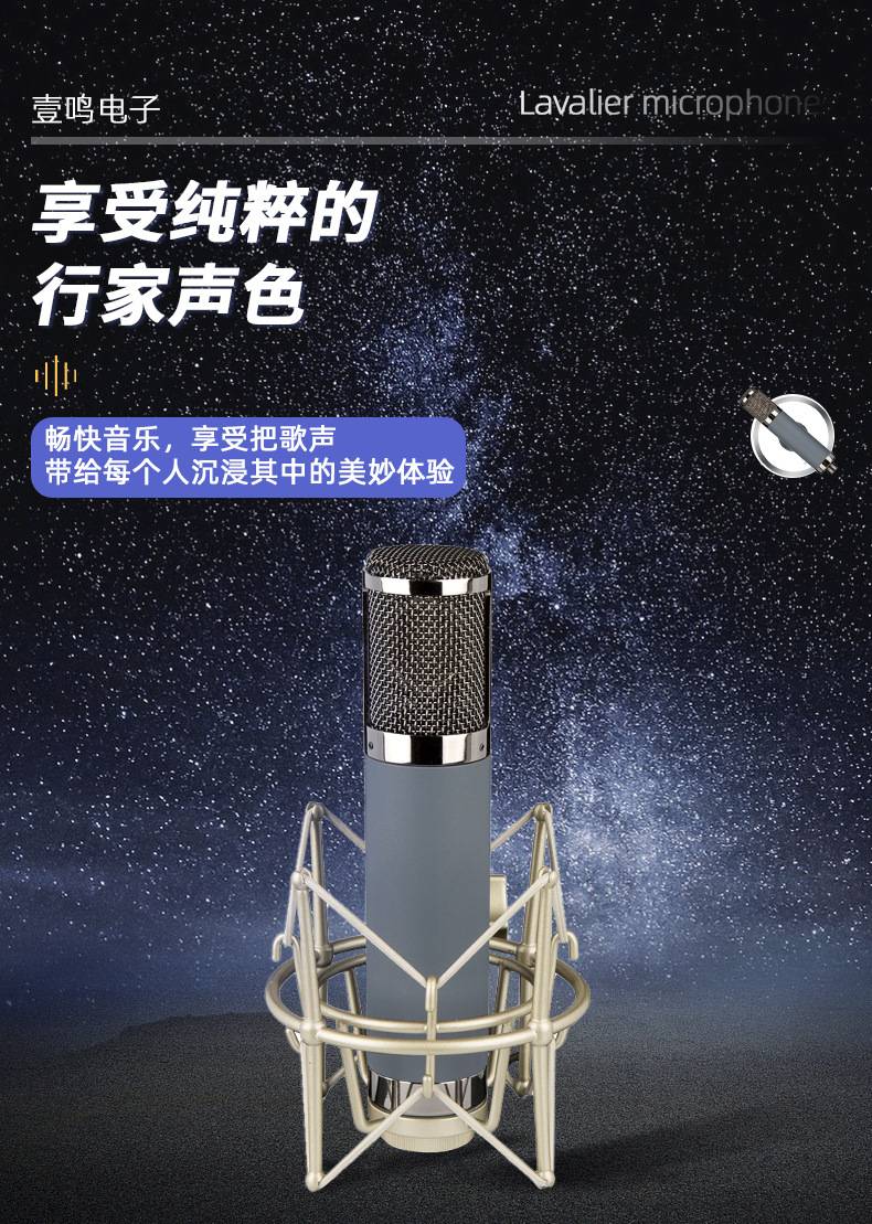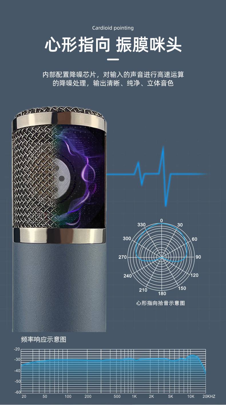 48V大振膜电容麦克风26咪芯 收音干净清晰透亮k歌声卡录音直播专用