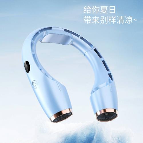 2023新款半导体充电USB便携式挂脖风扇涡轮无叶制冷懒人挂脖风扇
