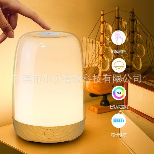 外贸新款木纹触摸小夜灯创意拍拍灯卧室床头台灯七彩氛围灯跨境灯