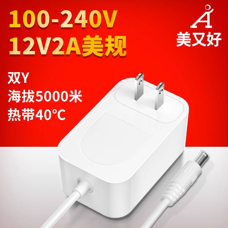 12V2A双Y热带40度海拔5000米开关电源适配器美规fcc黑色白色水族