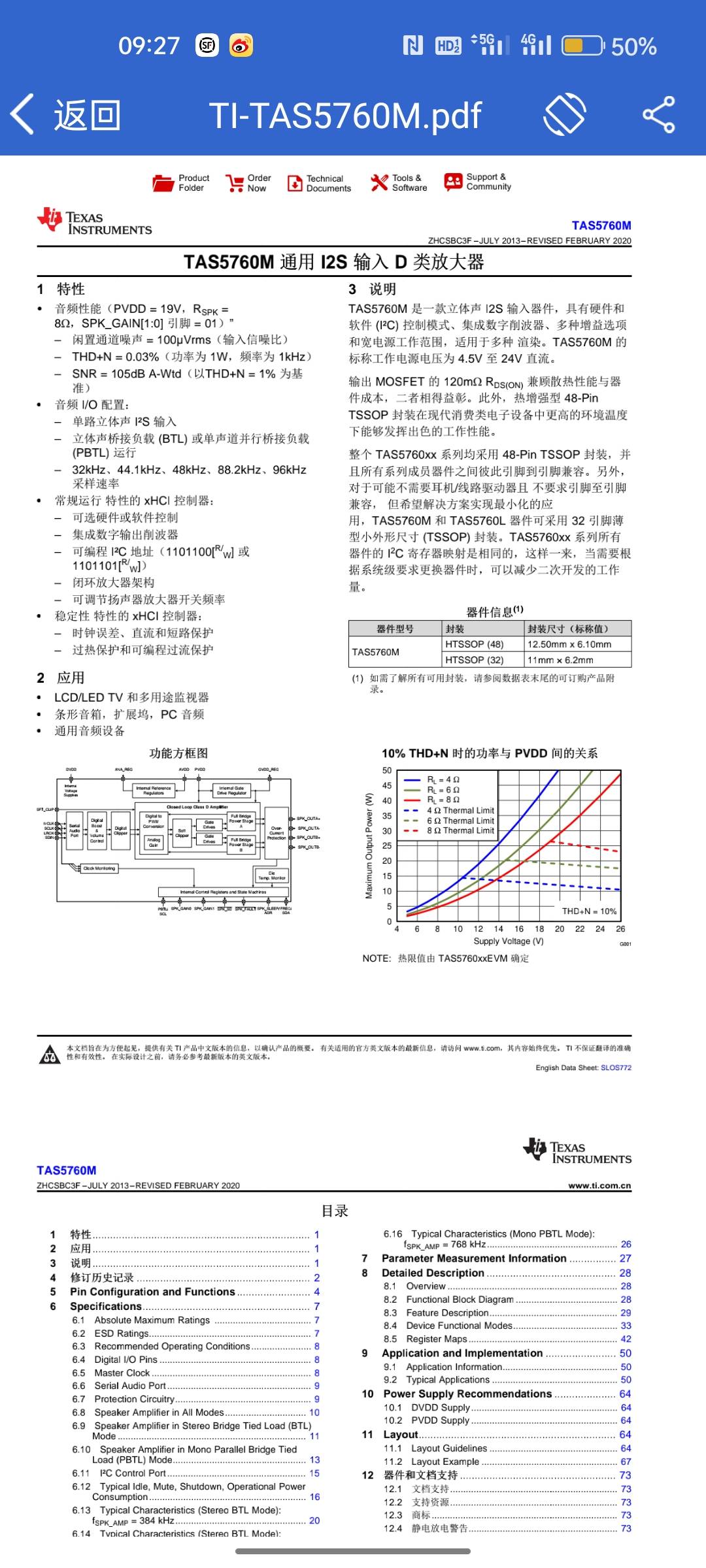 TAS5760L TAS5760M TAS5760MD D类功放音频芯片 进口原装全新