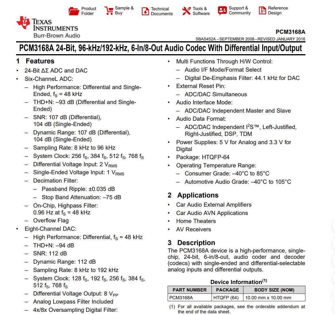 PCM3168A PCM3168APAPR 封装QFP-64 全新音频转换器芯片 原装现货