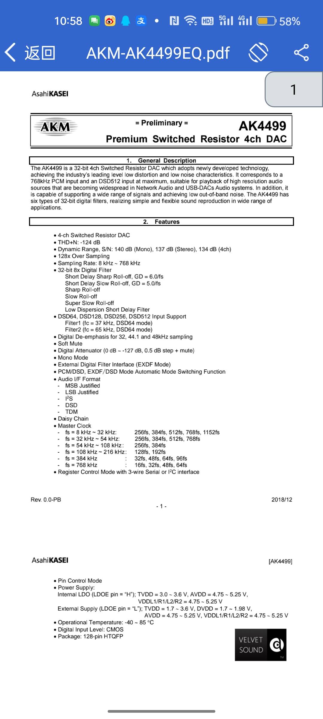 AKM AK4499EX.EQ AK4191EQ DAC解码芯片