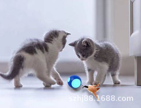 宠物电动玩具球逗猫球LED发光球USB充电智能逗猫羽毛球可换羽毛