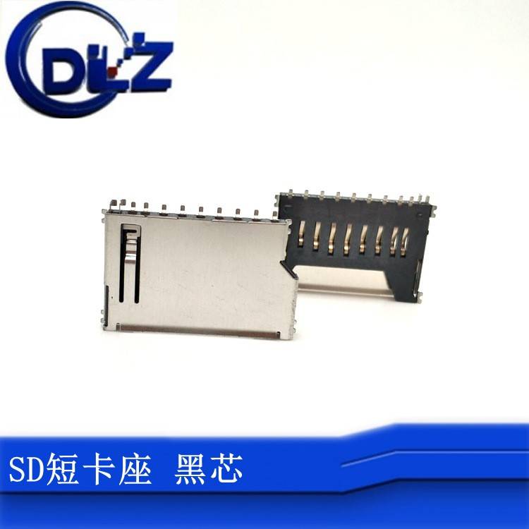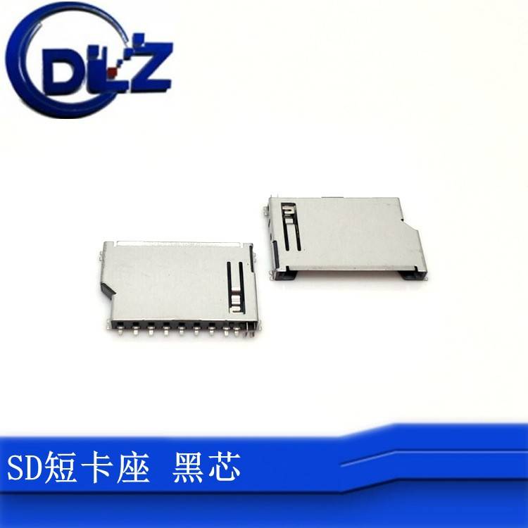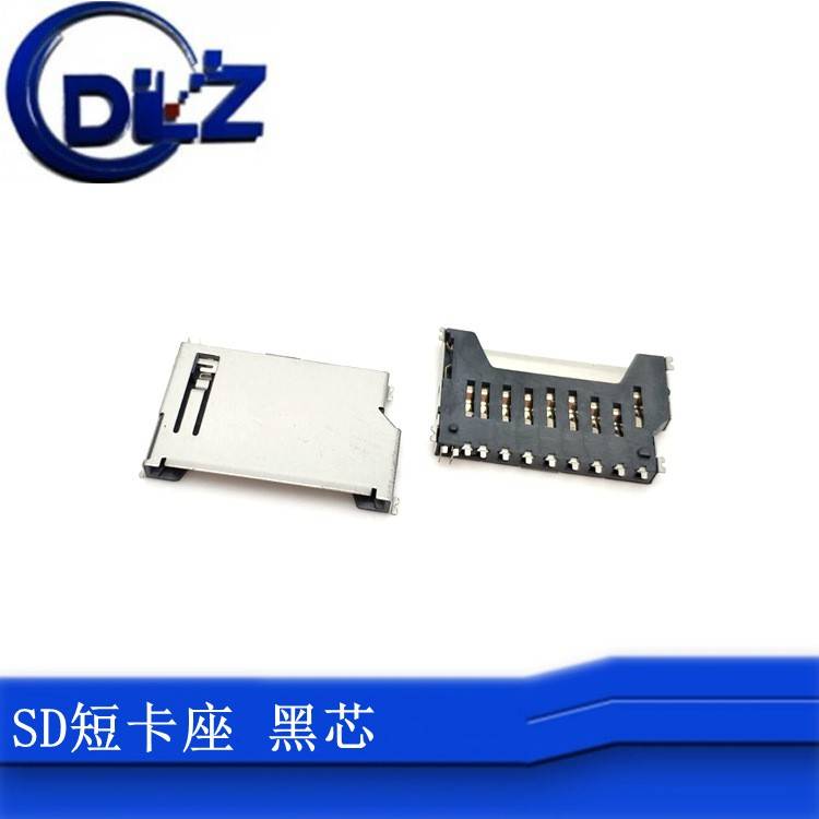 SD内存条卡座 电源连接器 音响读卡器电子卡座SD卡座SD短卡座黑芯