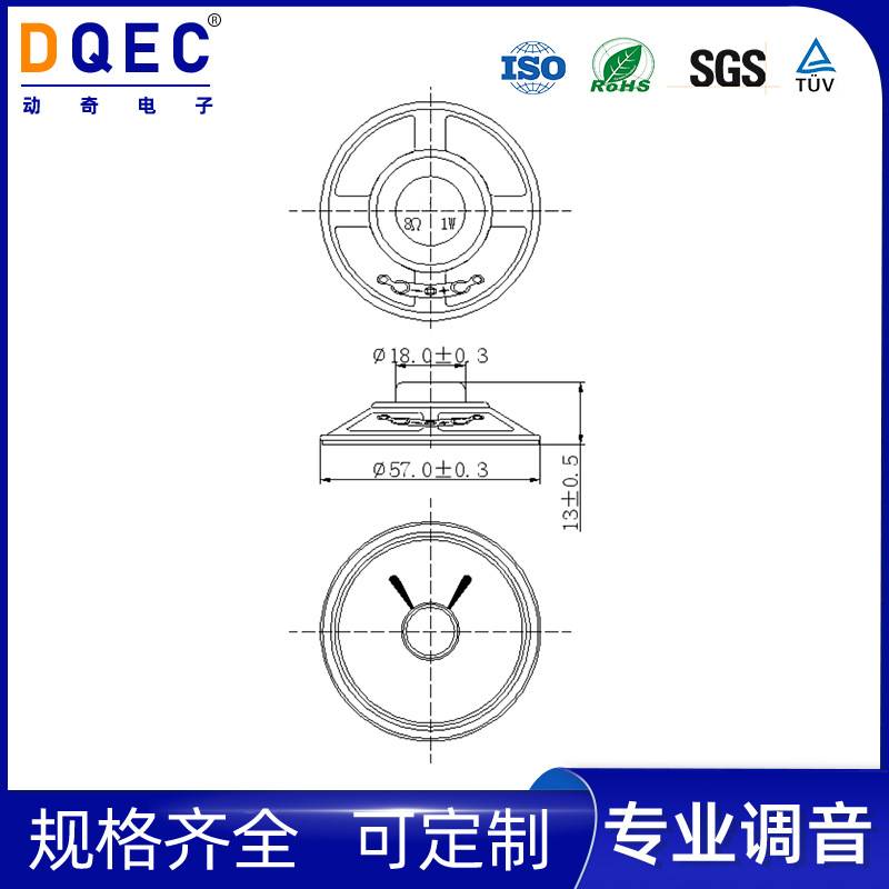 动奇扬声器57*13H mm高品质8Ω1W蓝牙小音箱楼宇警报器车载提示音厂家直销