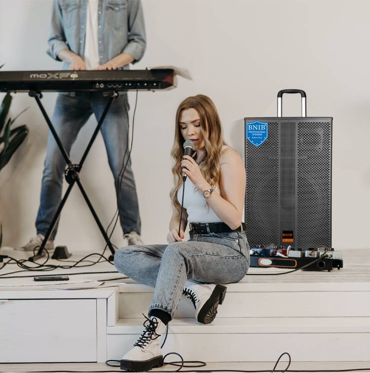 New Electronics BNIB Wooden Karaoke Speakers Wired Mic 12 Inch 1200w Loudspeaker Trolley Bluetooth Speaker