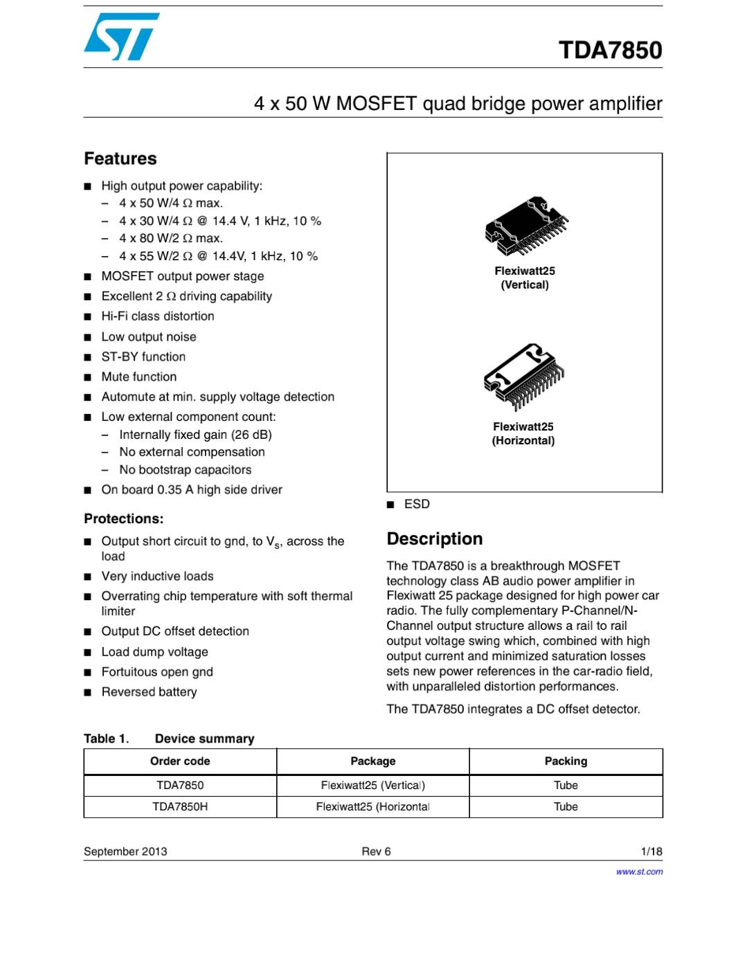 TDA7850 ST 4*50W 汽车功放芯片 原装全新进口正品