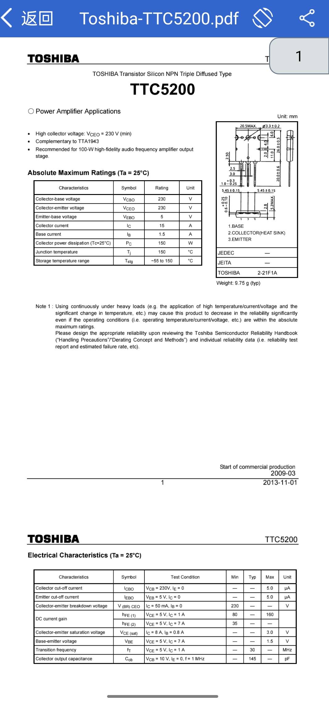 冲量!TTC5200/TTA1943 东芝对管 100W全新原装 功放机1300W