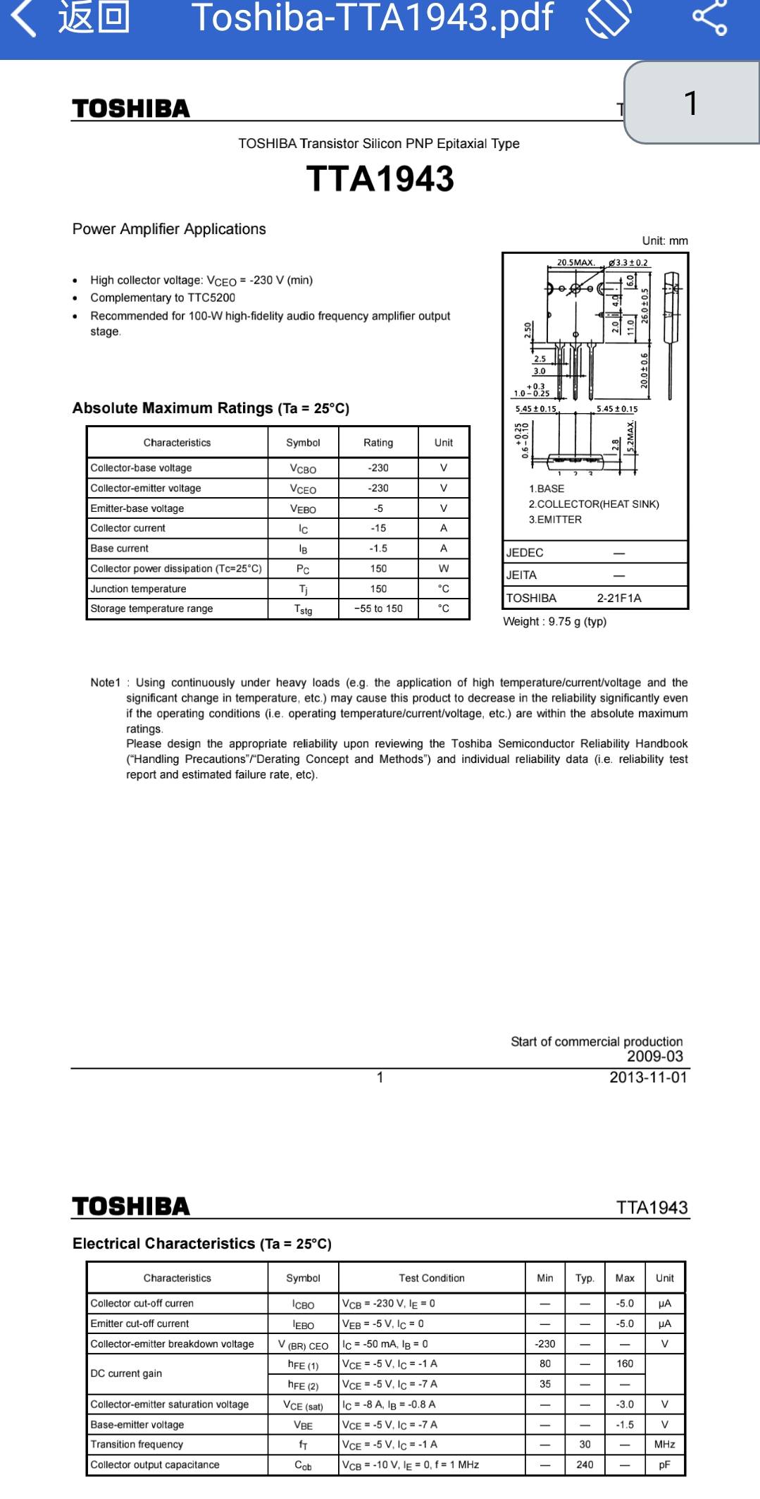 冲量!TTA5200/1943 东芝对管 100W全新原装 功放机1300W