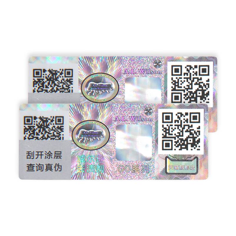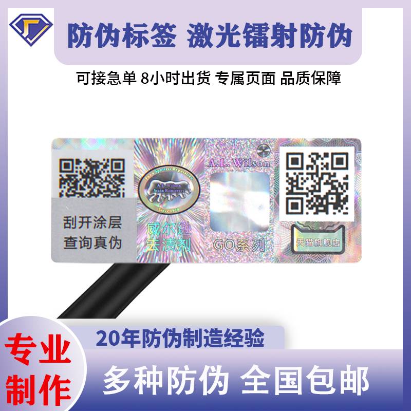全息激光镭射标签,镭射炫彩,高端上档次,一物一码防伪标,每个标签不一样二维码,像身份证一样。二维码可结合领红包功能,防伪功能,溯源功能,防窜货功能等,一码多用,手机直接扫码即可查询真伪。