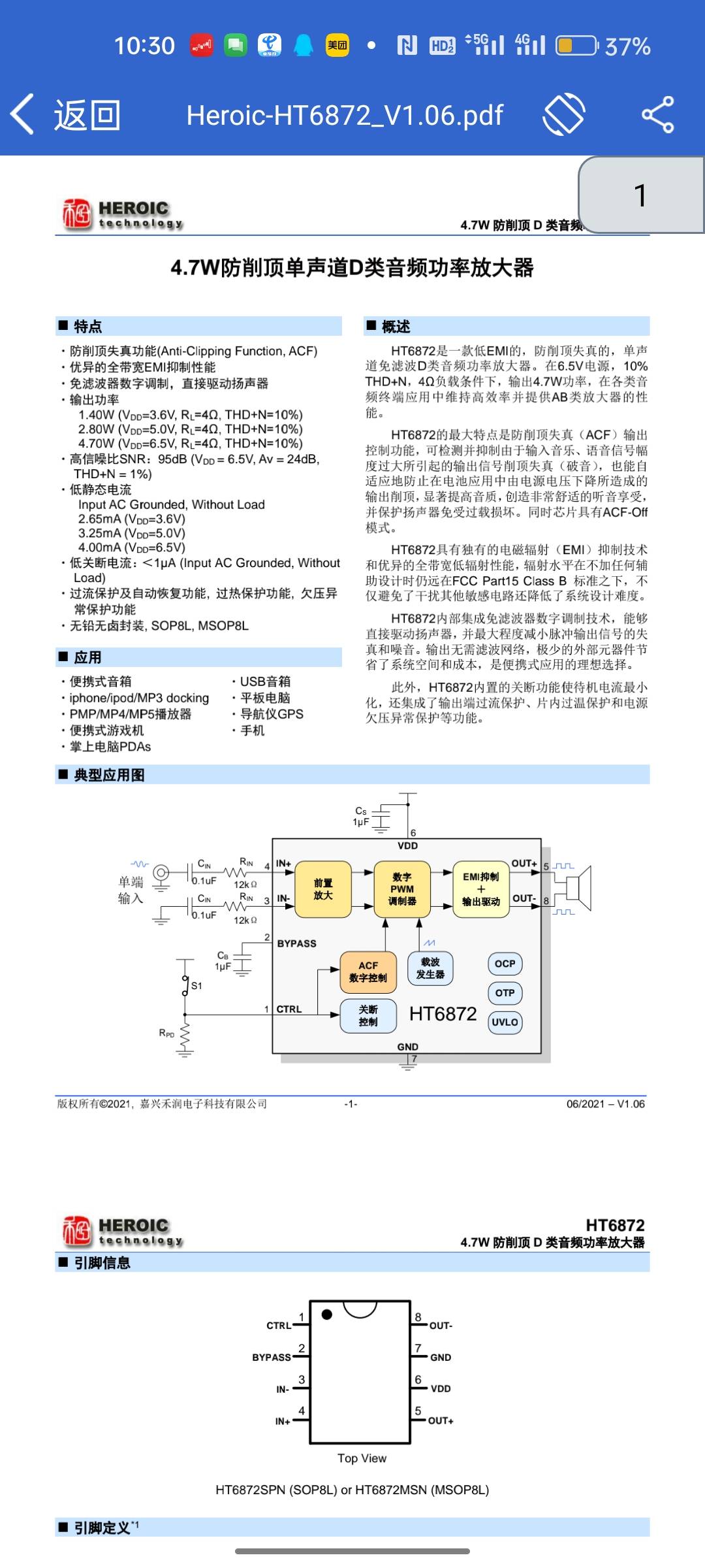 HT6872 HT 禾润功放芯片全系列优势代理分销
