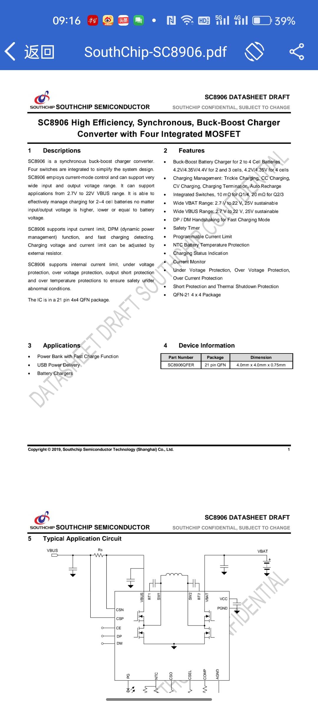 SC8906南芯 dc-dc 电源管理芯片 2-4节电池