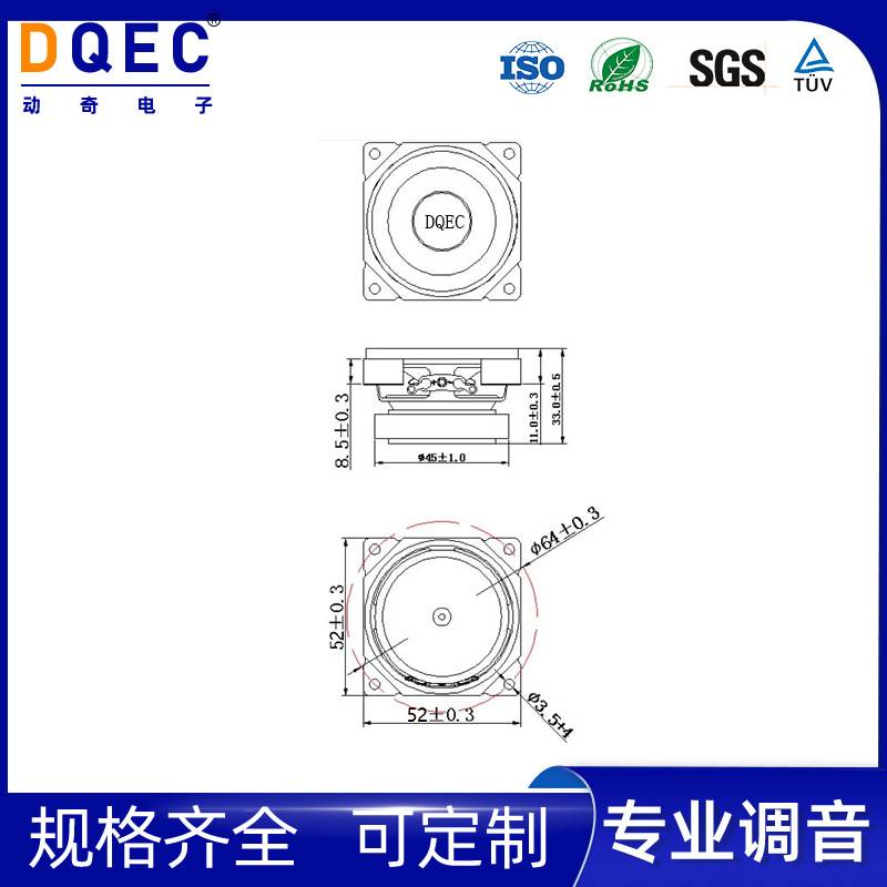 动奇扬声器52mm方形留声机早教机高品质音箱4Ω8W大功率内磁喇叭