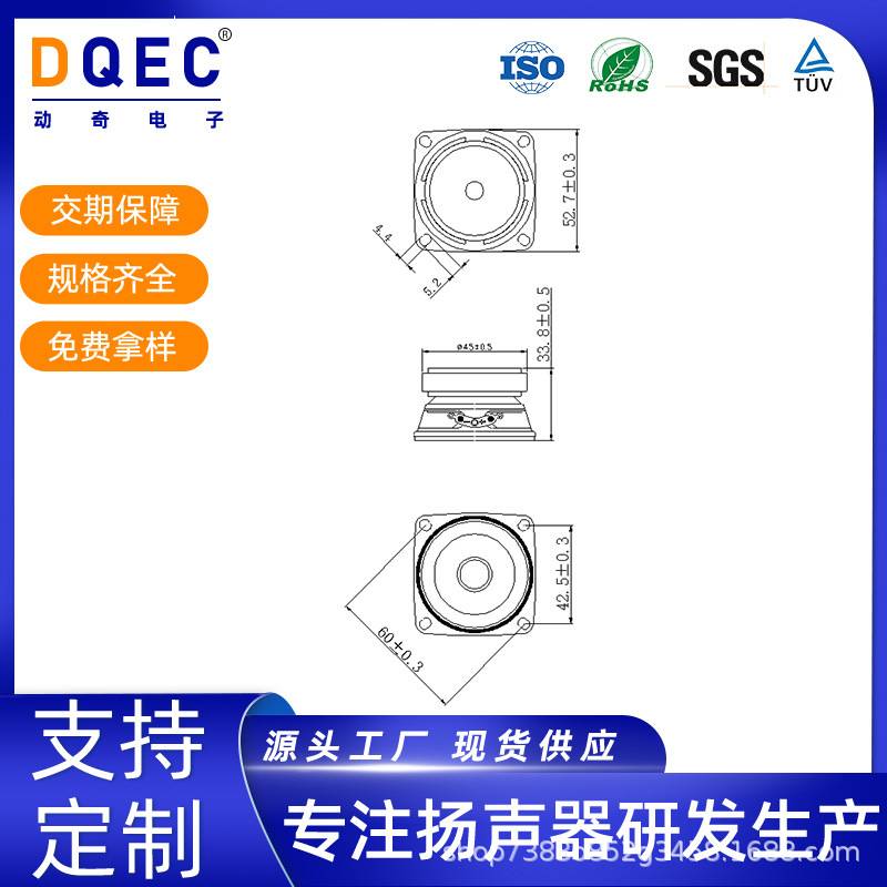 动奇扬声器53*33.8H mm蓝牙木箱高品质音响橡胶边大功率4Ω10W方形外磁喇叭