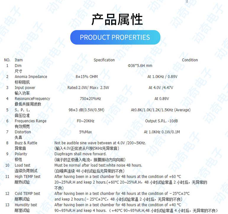 动奇扬声器36*5.6Hmm进口透明膜片大功率三防对讲机车载语音提示器8欧2瓦超薄内磁喇叭
