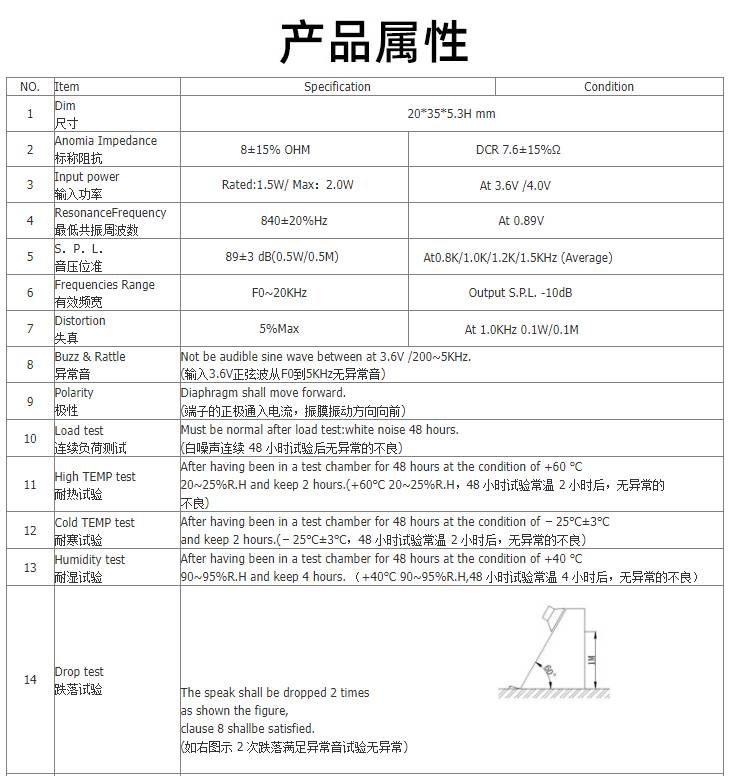 动奇喇叭20*35mm智能楼宇语音对讲机车载台进口耐高温膜片胶壳8欧2W喇叭