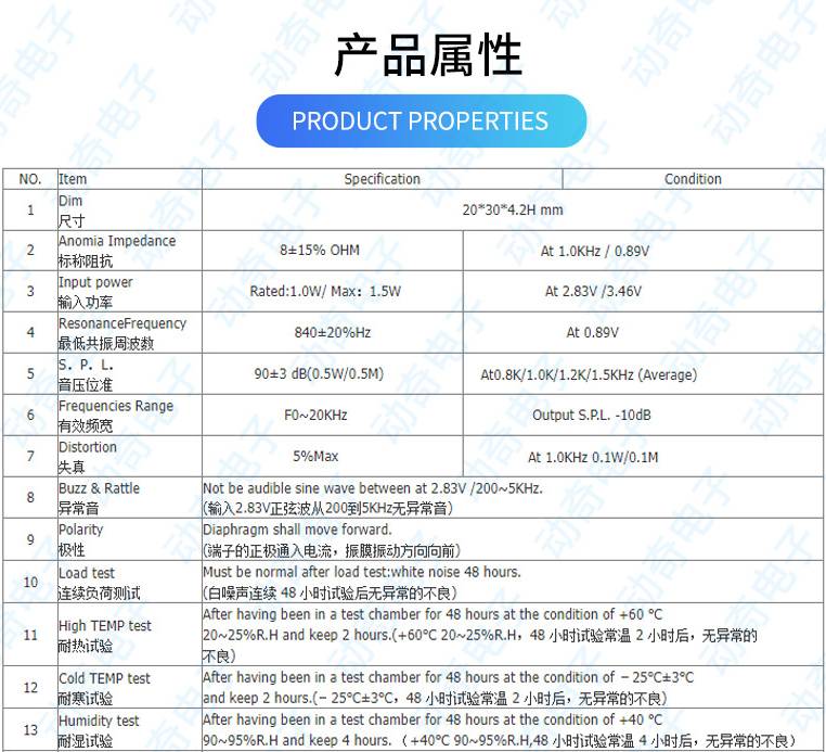 动奇扬声器20*30*4.2H mm点读笔录音笔翻译机平板电脑8Ω1W喇叭