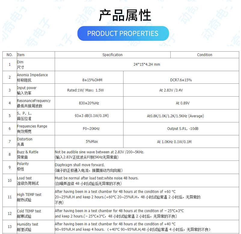 动奇扬声器36*5.6Hmm进口透明膜片大功率三防对讲机车载语音提示器8欧2瓦超薄内磁喇叭
