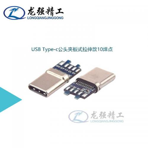 USB Type-c公头夹板式拉伸款10焊点