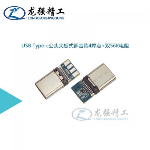 USB Type-c公头夹板式铆合款4焊点+双56K电阻