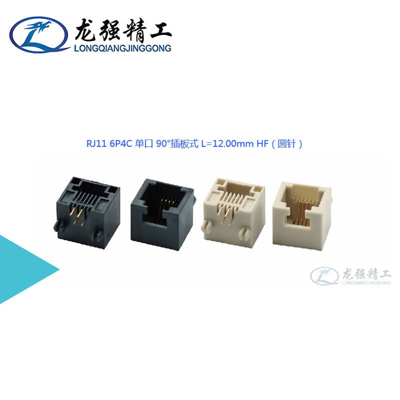 RJ11 6P4C 单囗 90°插板式 L=12.00mm HF(圆针)