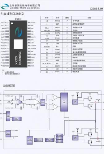 原装智浦欣微CS8683H EQB32封装 130W单声道D类音频功率放大器 全新正品供应
