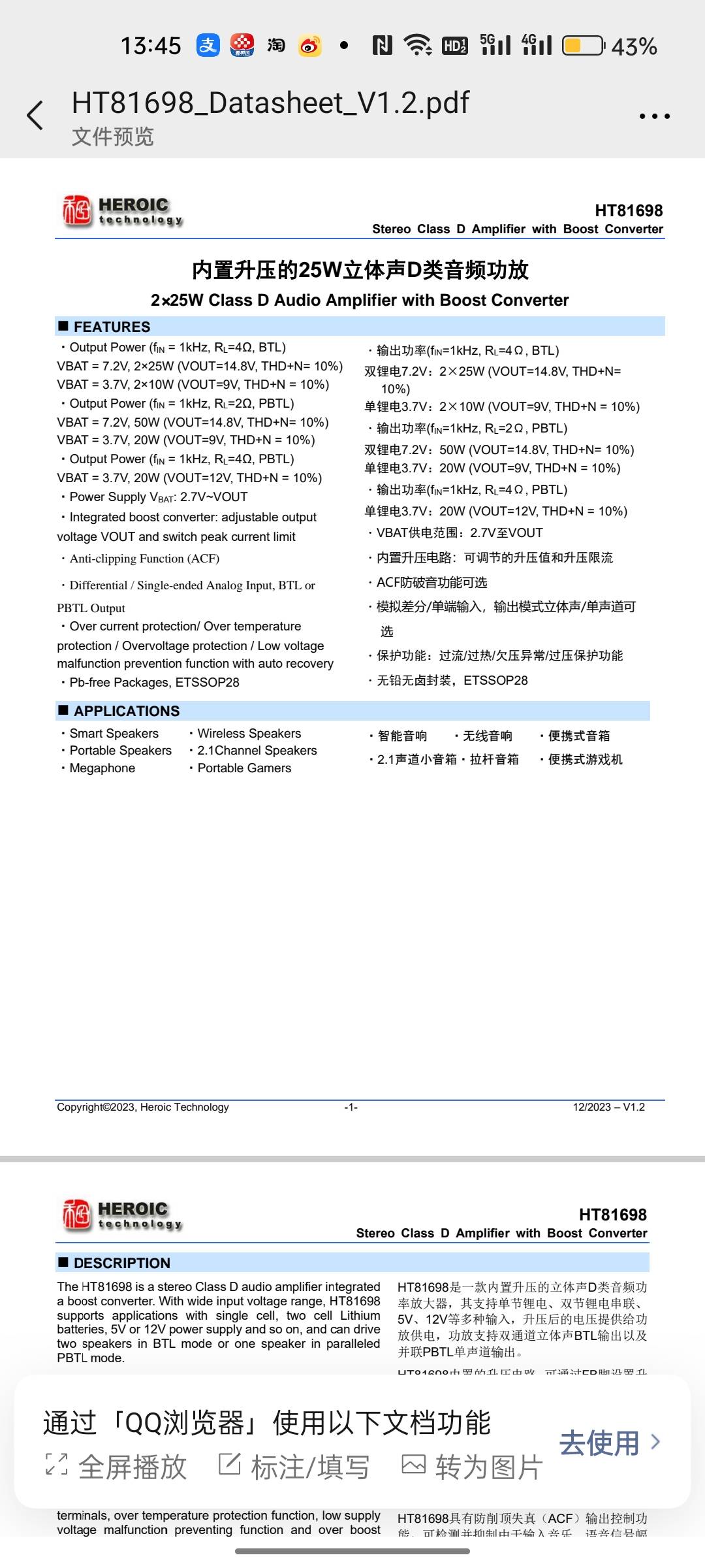 HT6872 HT 禾润功放芯片全系列优势代理分销