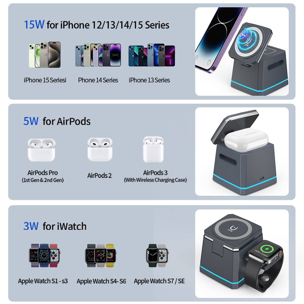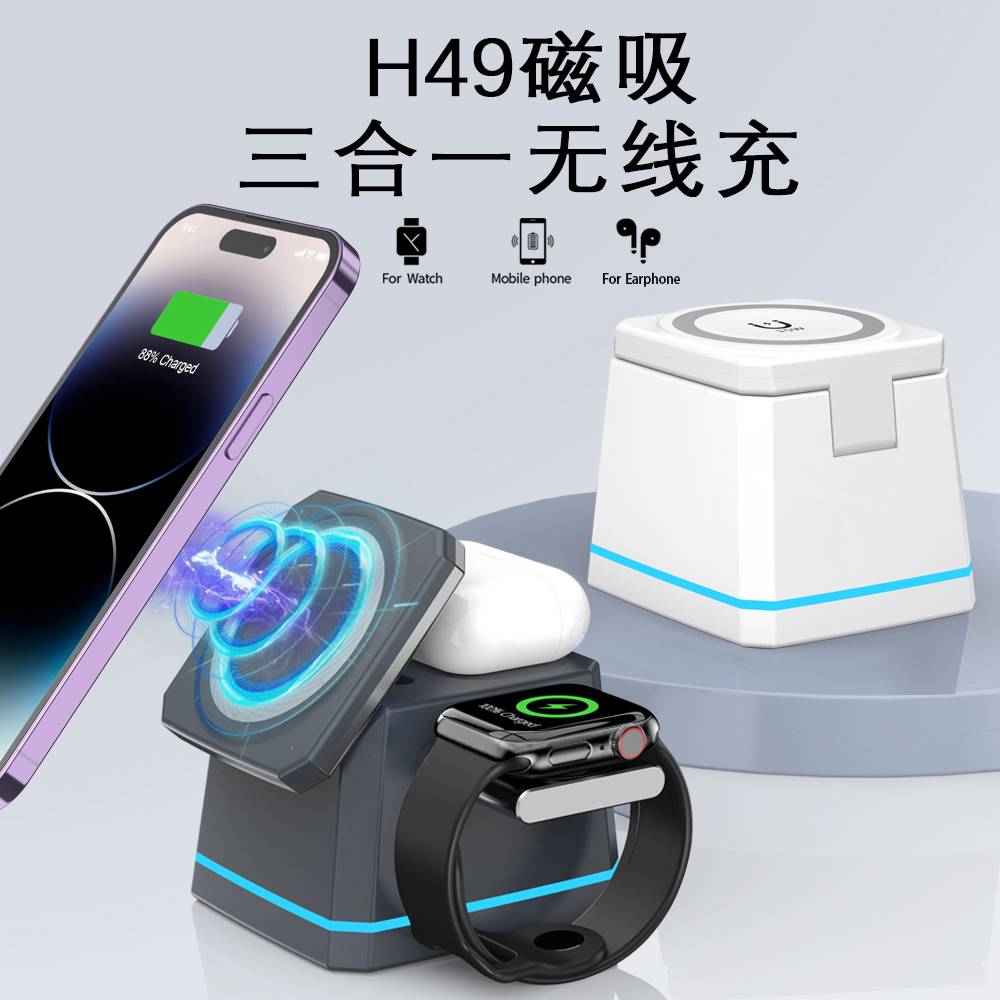 H49磁吸三合一无线充电器